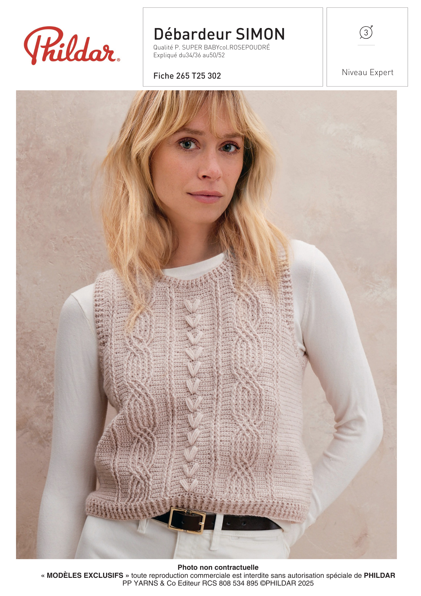 Élégant et travaillé, ce débardeur SIMON se crochète en P. SUPER BABY.