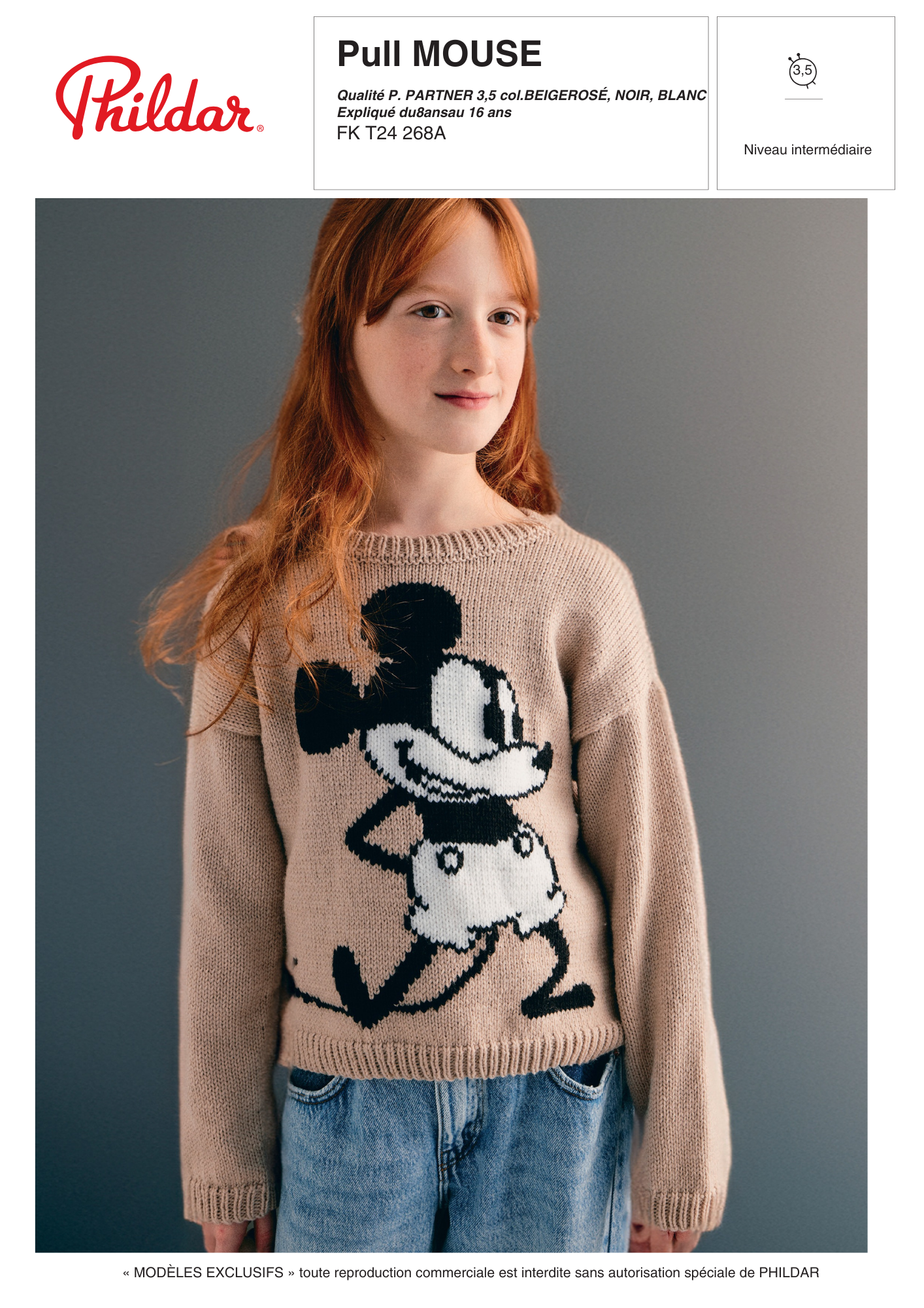 Idéal pour les fans de l'univers Disney, ce pull Mouse se tricote en jacquard avec le Phil Partner 3.5.