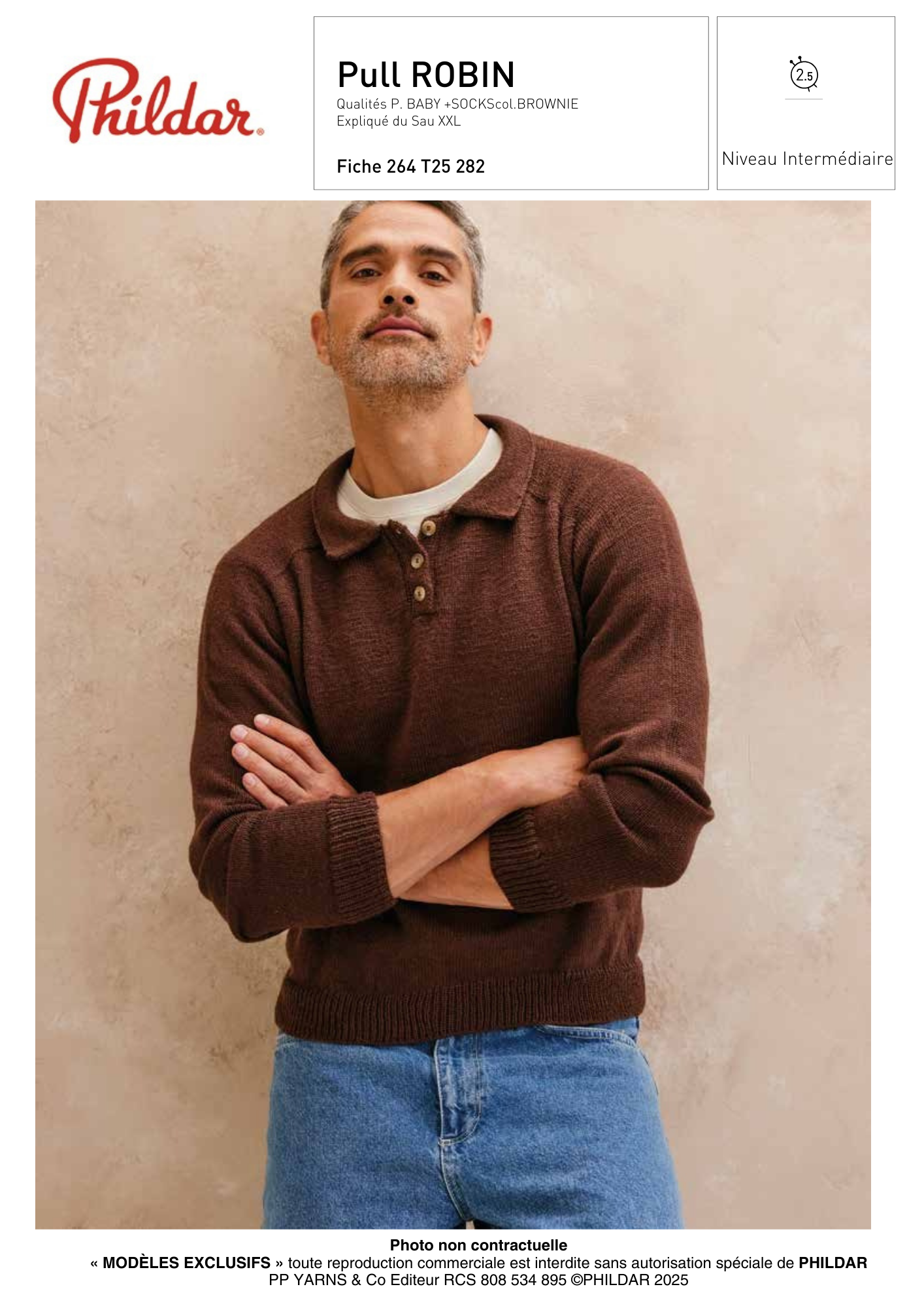 Inspiré du polo classique, le pull ROBIN se tricote en rond pour une finition impeccable.