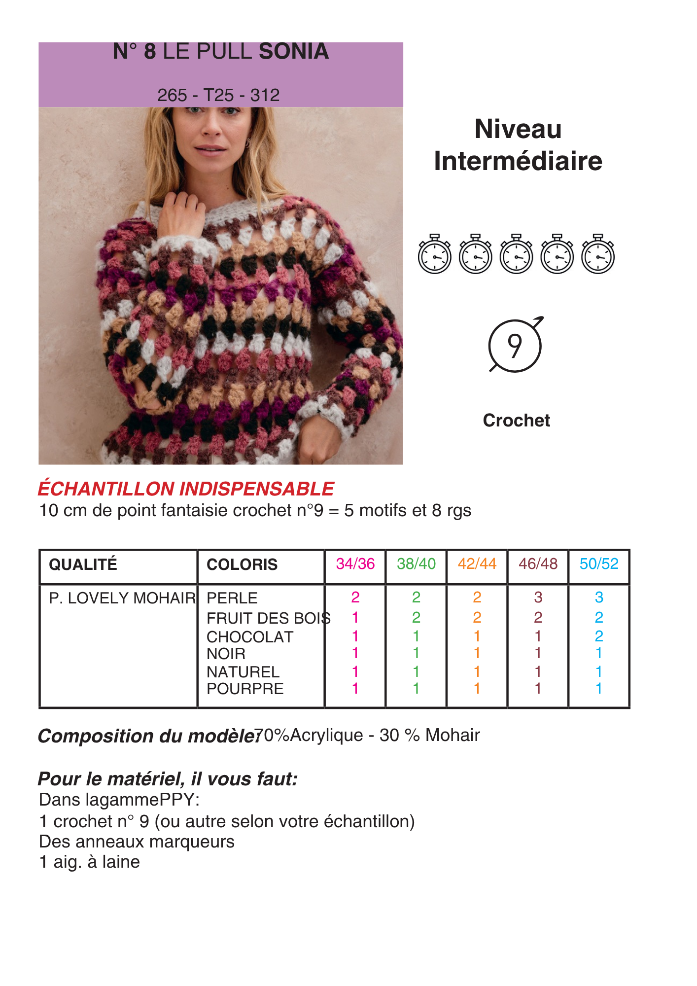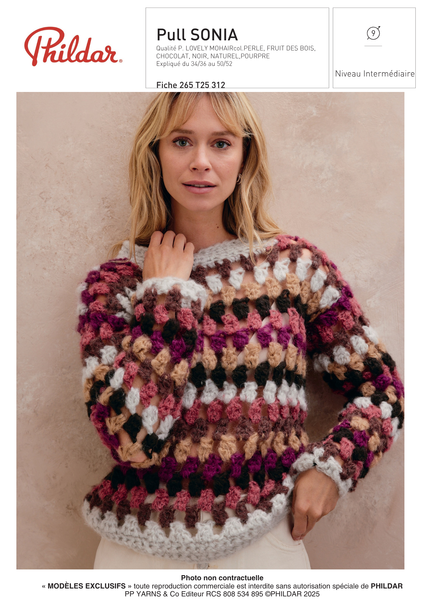 Coloré et original, ce pull SONIA se crochète en P. LOVELY MOHAIR.