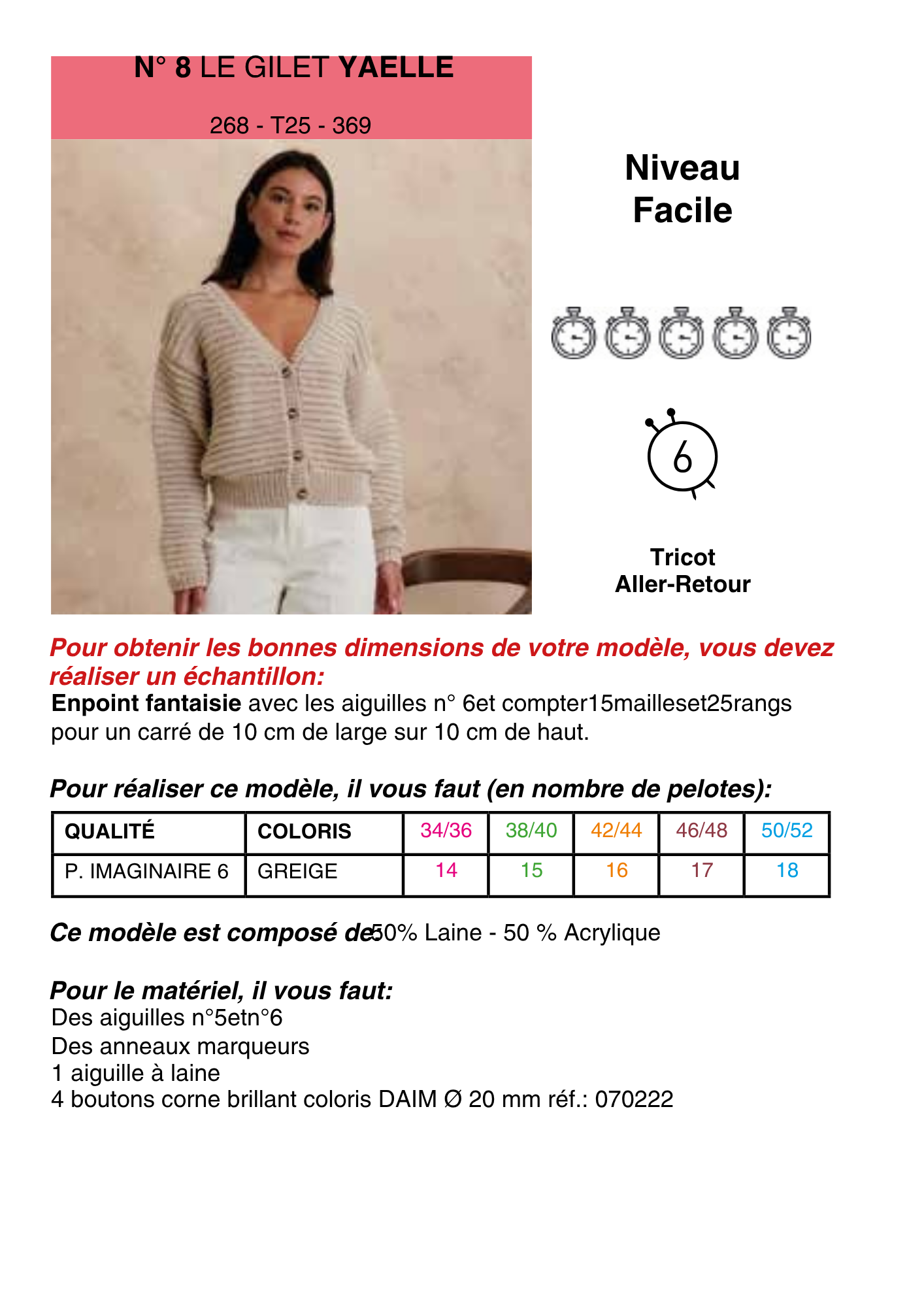 Facile à associer, ce gilet YAËLLE se tricote en P. IMAGINAIRE 6.