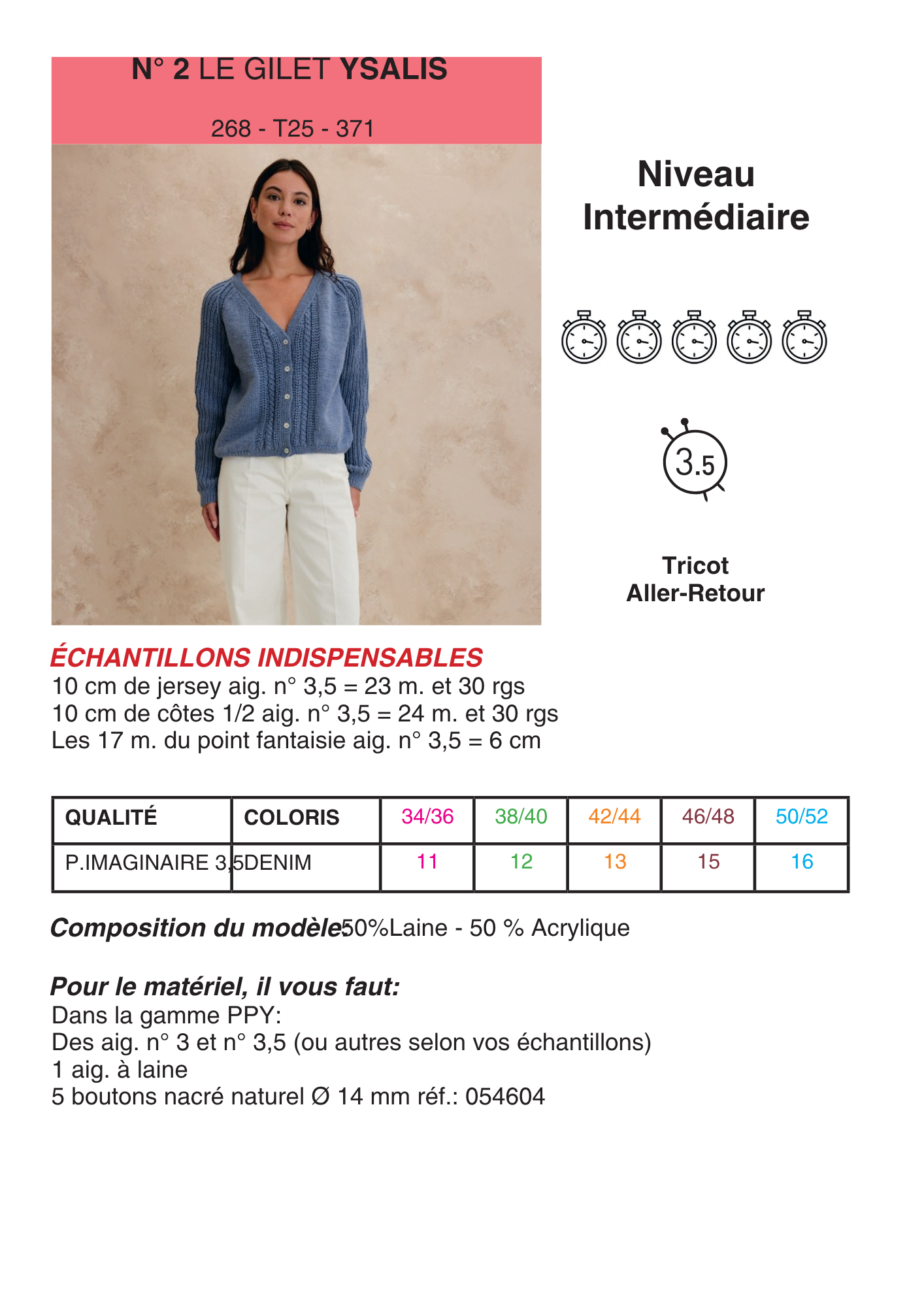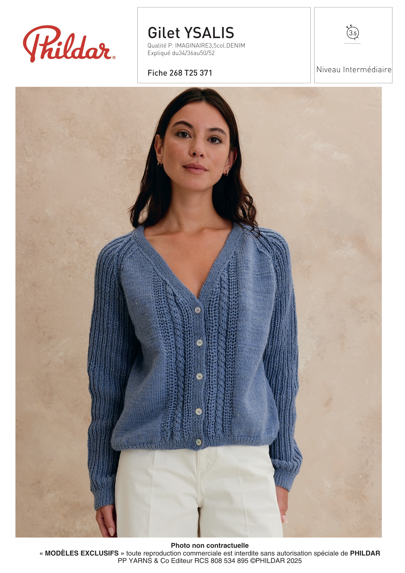 Classique et intemporel, ce gilet YSALIS se tricote en P. IMAGINAIRE 3,5.