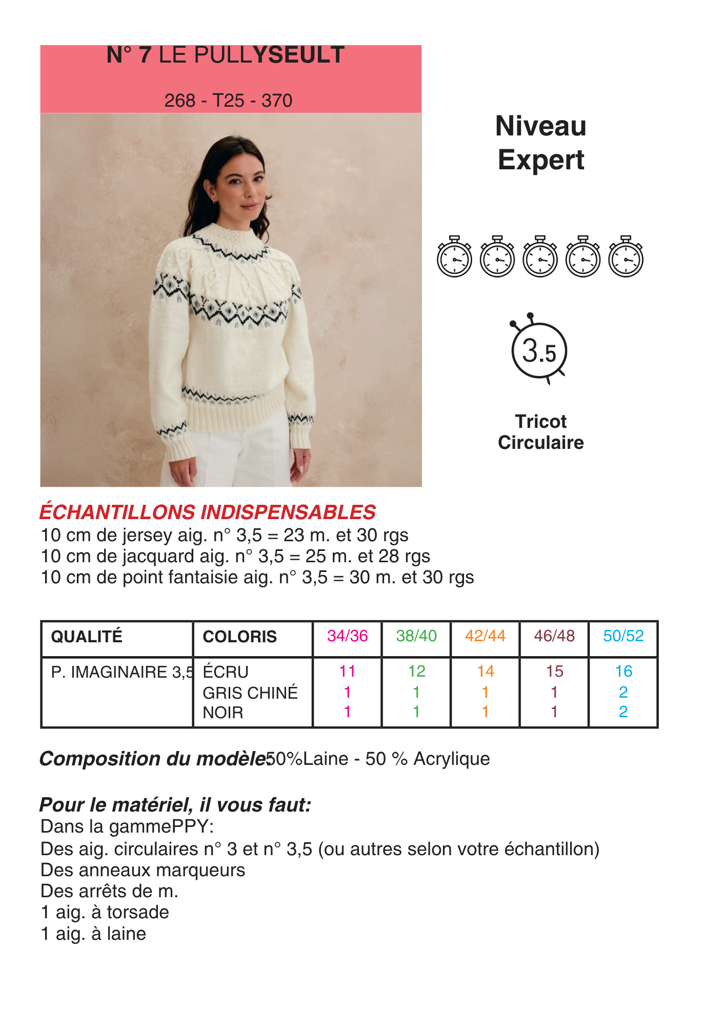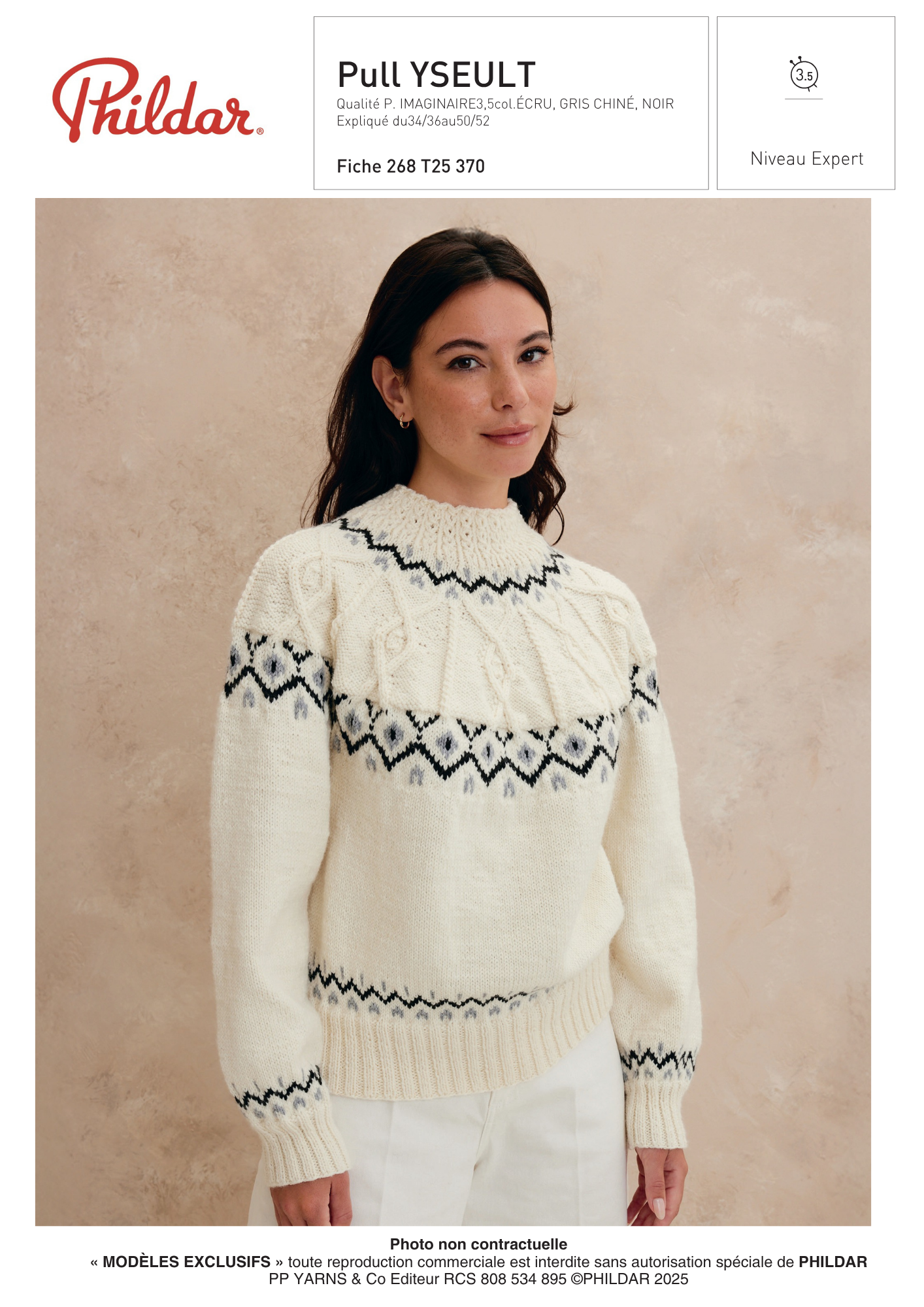 Original et élégant, le pull Yseult se distingue par ses torsades raffinées et son jacquard délicat.