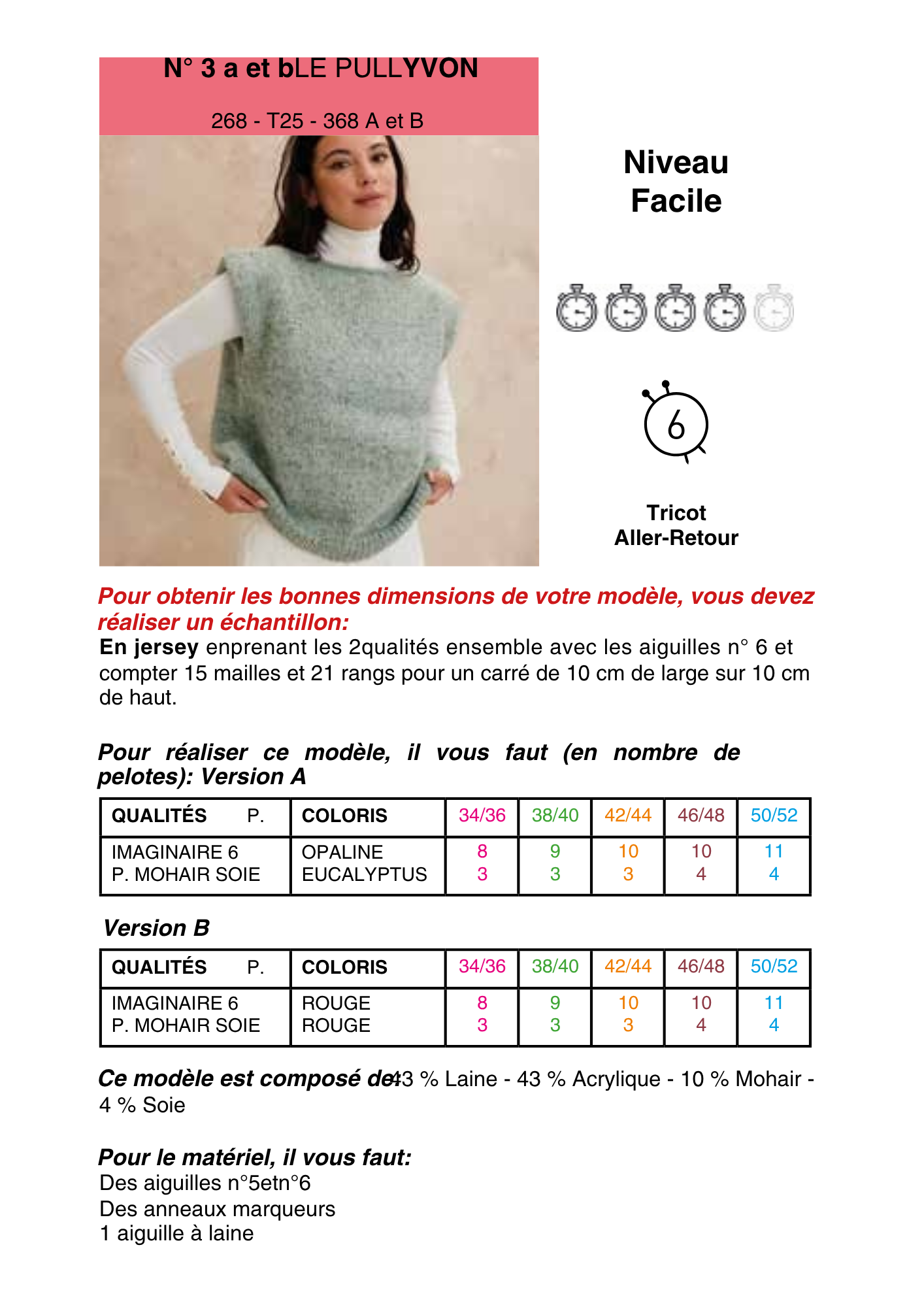 Idéal pour la mi-saison, ce pull sans manches YVON se tricote en aller et retour