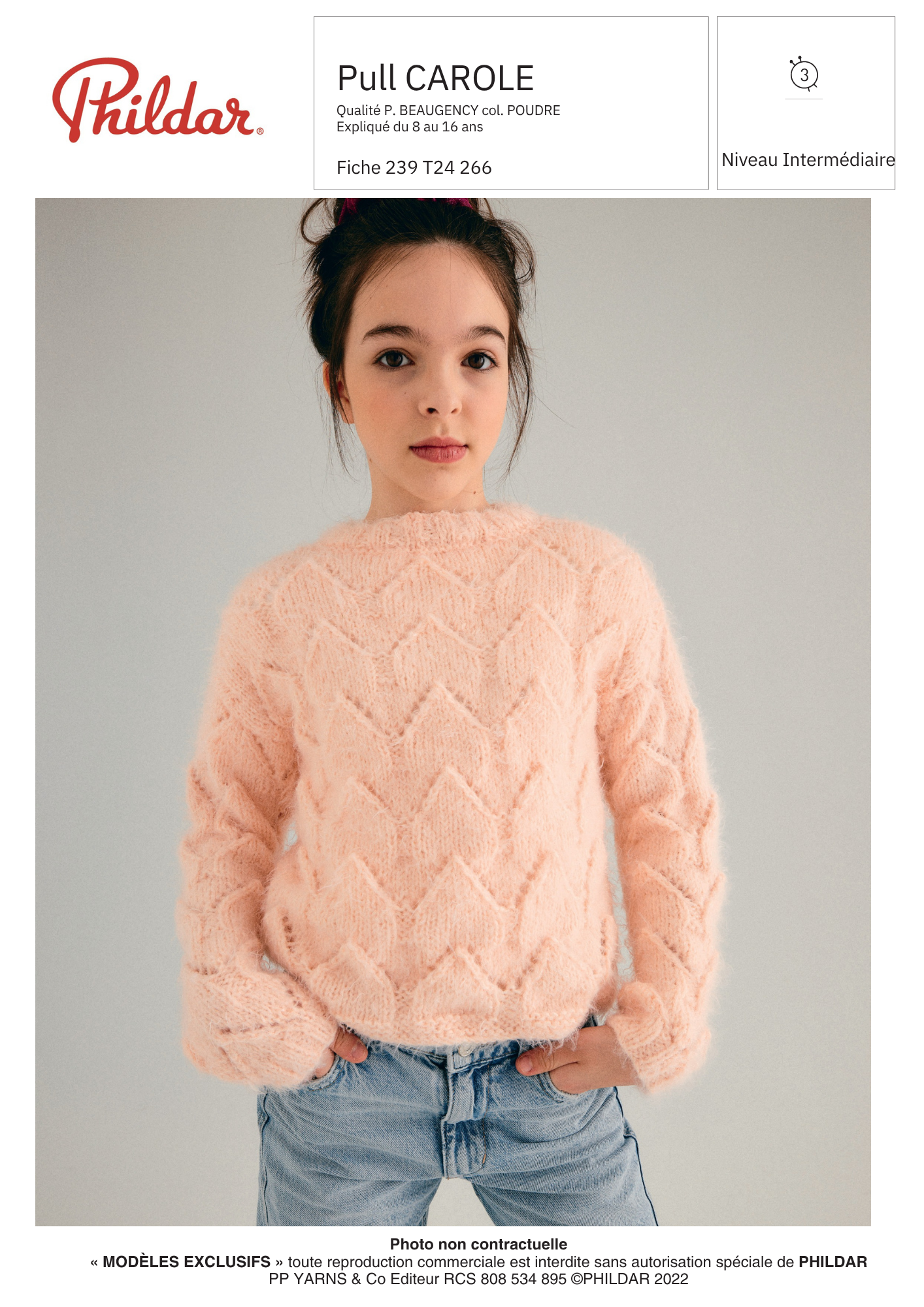 Le pull Carole est à tricoter en Phil Beaugency. Avec la sublime palette de couleurs disponible et le point fantaisie, cet ouvrage fera à coup sur le bonheur de votre ado.
