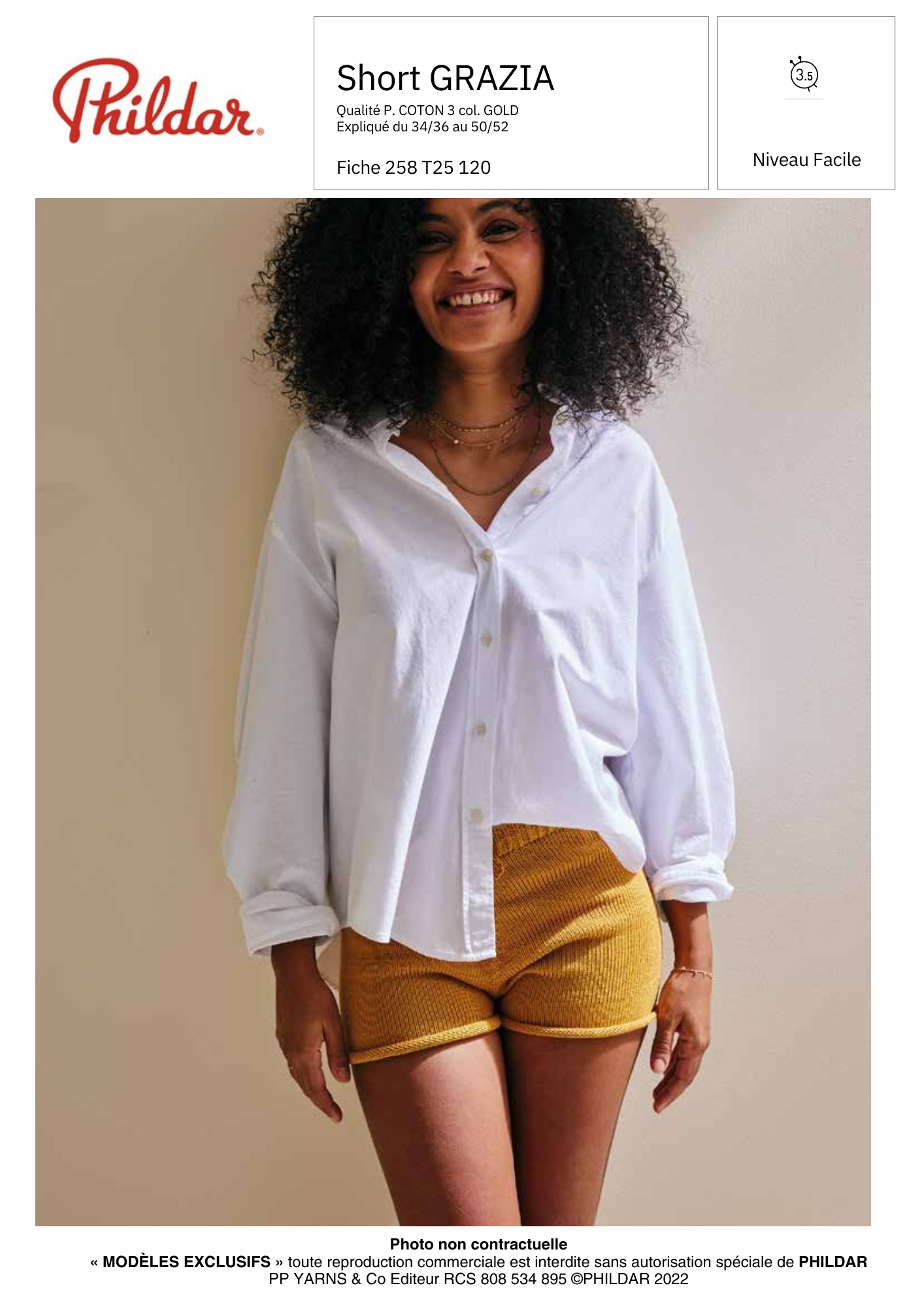Tricotez ce magnifique short Grazia en Phil Coton 3 en circulaire, un projet idéal pour se lancer dans le tricot en rond. Vous obtiendrez ainsi un vêtement élégant et facile à réaliser, parfait pour débuter cette technique.